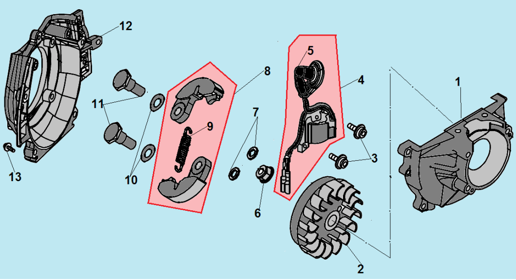 3 СЦЕПЛЕНИЕ - МАХОВИК - МАГНЕТО | Запчасти для триммера чемпион Т256 | Поставка по России | Магазин-Сервис в СПБ |