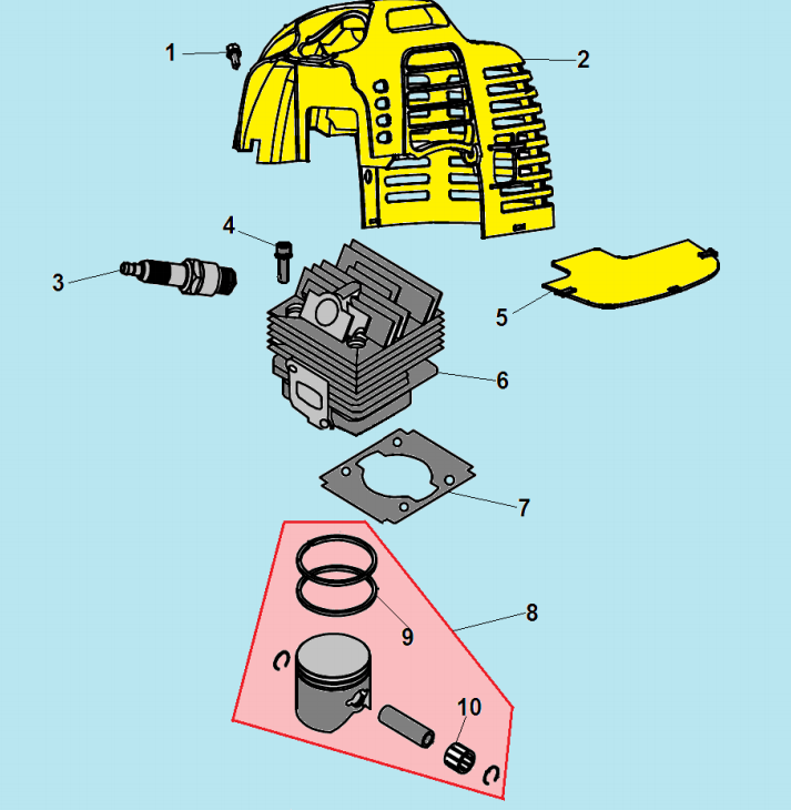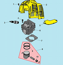 1 ПОРШЕНЬ - ЦИЛИНДР - СВЕЧА | Запчасти для триммера чемпион Т256 | Поставка по России | Магазин-Сервис в СПБ |