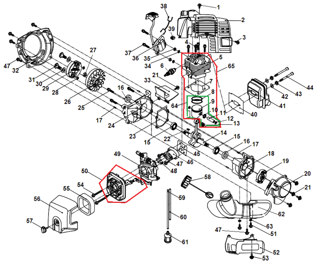 1 ПОРШЕНЬ - ЦИЛИНДР - КОЛЕНВАЛ - КОЛЬЦА - МАГНЕТО - МАХОВИК - СТАРТЕР - СЦЕПЛЕНИЕ | Запчасти для триммера чемпион Т263 | Поставка по России | Магазин-Сервис в СПБ |