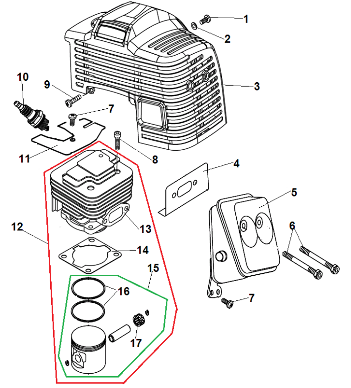 1 ПОРШЕНЬ - ЦИЛИНДР - СВЕЧА | Запчасти для триммера чемпион Т346 | Поставка по России | Магазин-Сервис в СПБ |