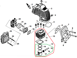 1 ПОРШЕНЬ - ЦИЛИНДР - СВЕЧА - КАРБЮРАТОР - ФИЛЬТР | Запчасти для триммера чемпион Т525 | Поставка по России | Магазин-Сервис в СПБ |