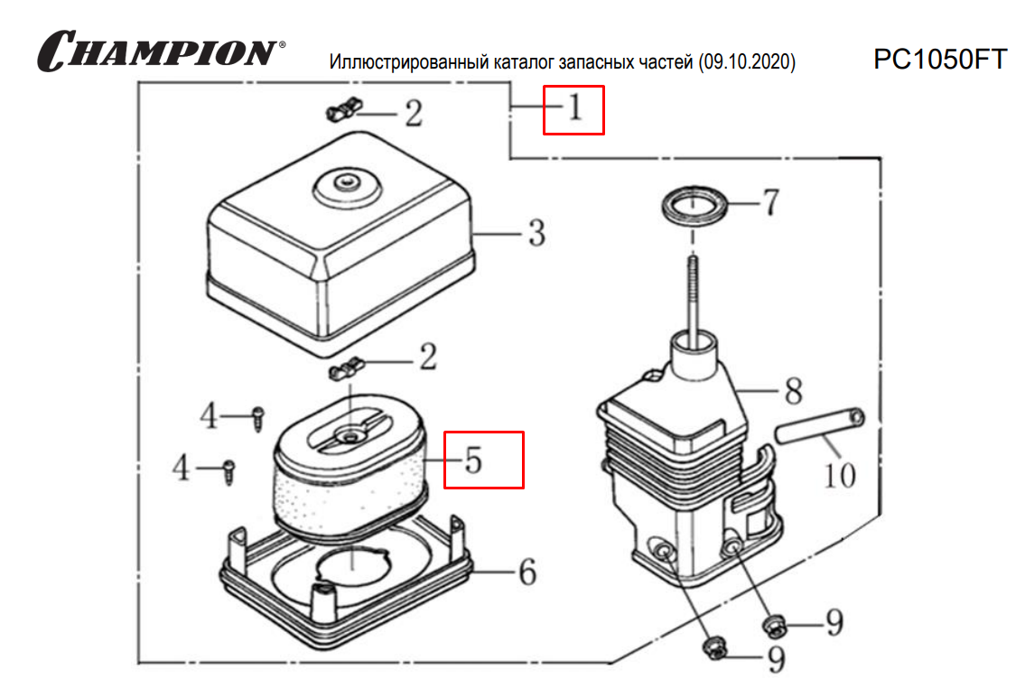 5 | КРЫШКА | Запчасти для виброплиты чемпион | PC1050FT | Поставка по России | Магазин-Сервис в СПБ |