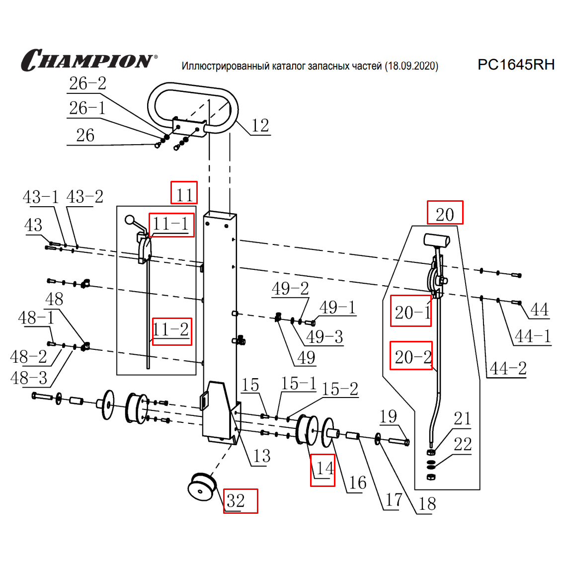 2 | РУЧКА - ТРОС - АМОРТИЗАТОРЫ | Запчасти для виброплиты чемпион | PC1645RH | Поставка по России | Магазин-Сервис в СПБ |