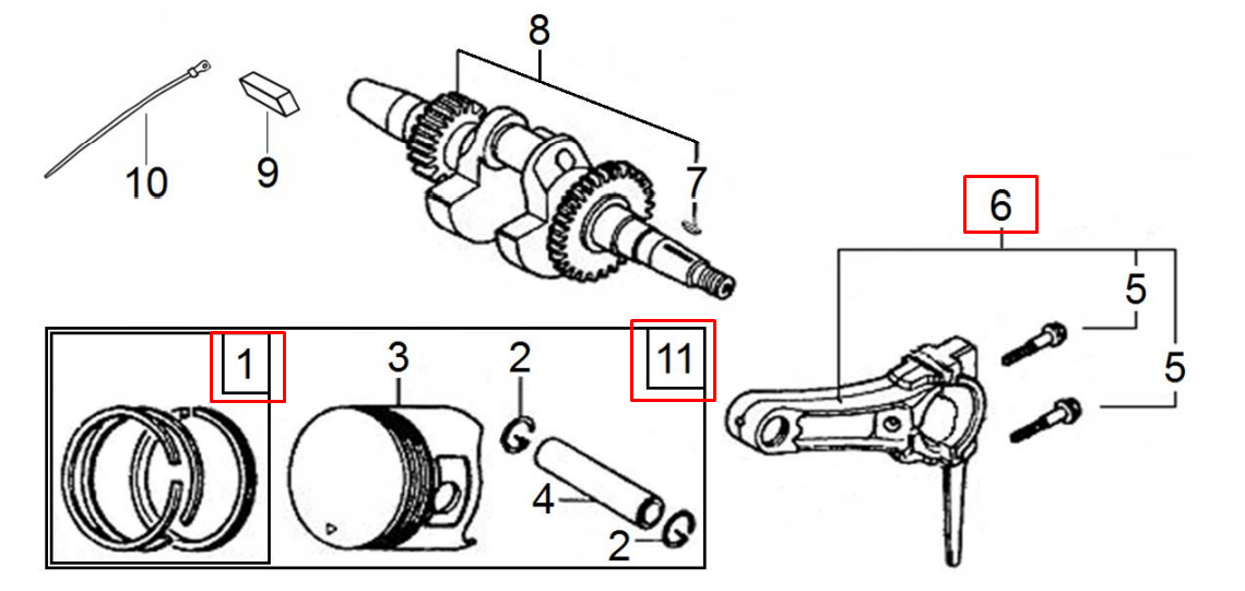 5 | ПОРШЕНЬ - КОЛЕНВАЛ- КОЛЬЦА | Запчасти для виброплиты чемпион | PC5332F | Поставка по России | Магазин-Сервис в СПБ |