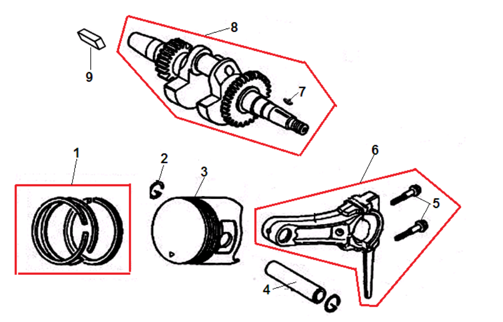 4 ПОРШЕНЬ -ЦИЛИНДР -КОЛЕНВАЛ- КОЛЬЦА | Запчасти для виброплиты чемпион PC5431F | Поставка по России | Магазин-Сервис в СПБ |