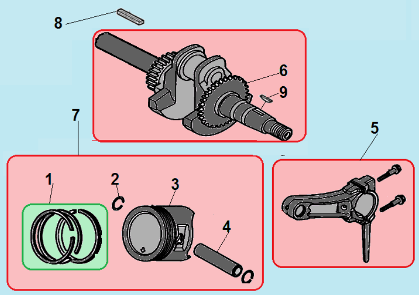 7 ПОРШЕНЬ -ЦИЛИНДР -КОЛЕНВАЛ- КОЛЬЦА | Запчасти для виброплиты чемпион PC9750FT | Поставка по России | Магазин-Сервис в СПБ |