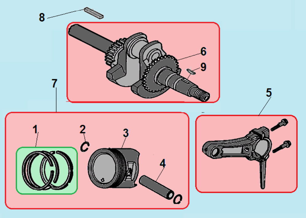 7 ПОРШЕНЬ -ЦИЛИНДР -КОЛЕНВАЛ- КОЛЬЦА | Запчасти для виброплиты чемпион TR72 | Поставка по России | Магазин-Сервис в СПБ | | в СПБ